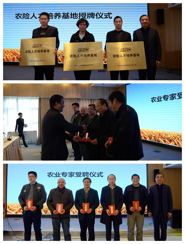 2016年,作为农险人才培养的新举措,公司将着力搭建三个平台:一是自我培育平台,二是专业引领平台,三是校企合作平台。会上,公司总裁乔中兴向嘉定支公司、南汇支公司、奉贤支公司授予了“农险人才培养基地”铭牌,并向来自农业生产技术和研究部门的7位专家颁发了聘书,聘请他们作为公司的农业专家,成为今后农险发展及人才培养的外脑和智库。