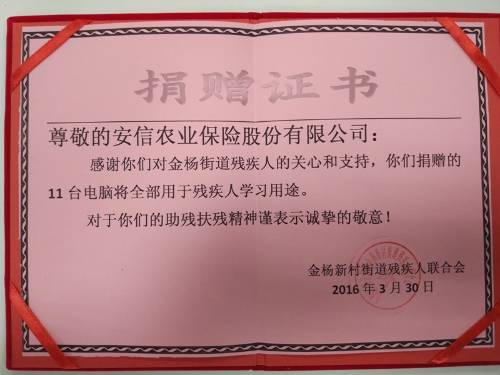 会上,金杨街道对安信保险浦东支公司连续两年的党支部共建活动给予了高度评价,并衷心感谢安信保险志愿者团队向金杨阳光家园残疾人提供的志愿服务和捐赠的电脑,特地为我司颁发了“守护之星”荣誉奖牌。